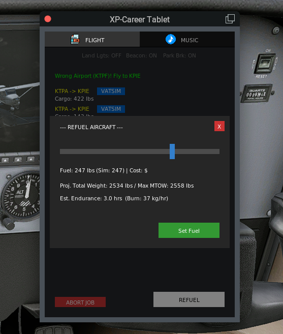 Disable Weight and Fuel Setting Option: If you have a separate utility to set your weight and fuel, you can now disable XP-Career from setting your cargo and fuel so it does not interfere. Simply check the disable boxes in the settings window.